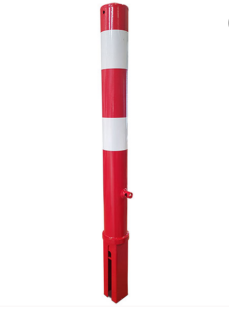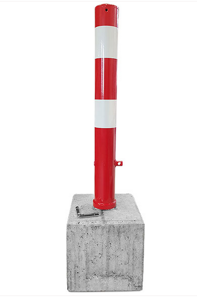 Absperrpfosten Rund 90 abnehmbar Rot mit Weiß mit Dreikantschloss+Betonsockel