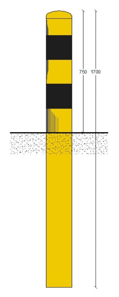 Absperrpoller 159x4,5x1700 mm. Erdreich gelb schwarz