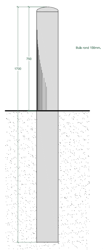 Absperrpoller aus Edelstahl Geschliffen K320 Ø156x2,9x1700mm. Erdreich kw.316