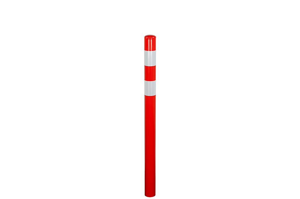 Absperrpoller 76x3,25x1500 mm. Erdreich rot weiß