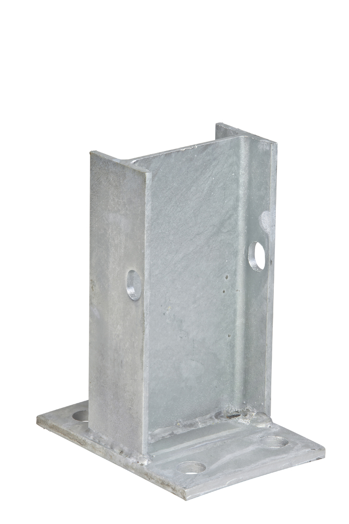 Unser Pfosten IPE 140 ist für die Montage von Geländern vorgesehen. Die Höhe dieses Modells beträgt 260mm, so dass das Geländerbrett fest auf dem Boden sitzt. Die 150x200mm. Fußplatten sind so angebracht, dass sie nicht zwischen der Diele und dem Boden eingeklemmt werden können. Das IPE-Profil der Strebe ist standardmäßig mit zwei Löchern versehen, um auf beiden Seiten ein Geländerbrett zu befestigen, falls gewünscht.
