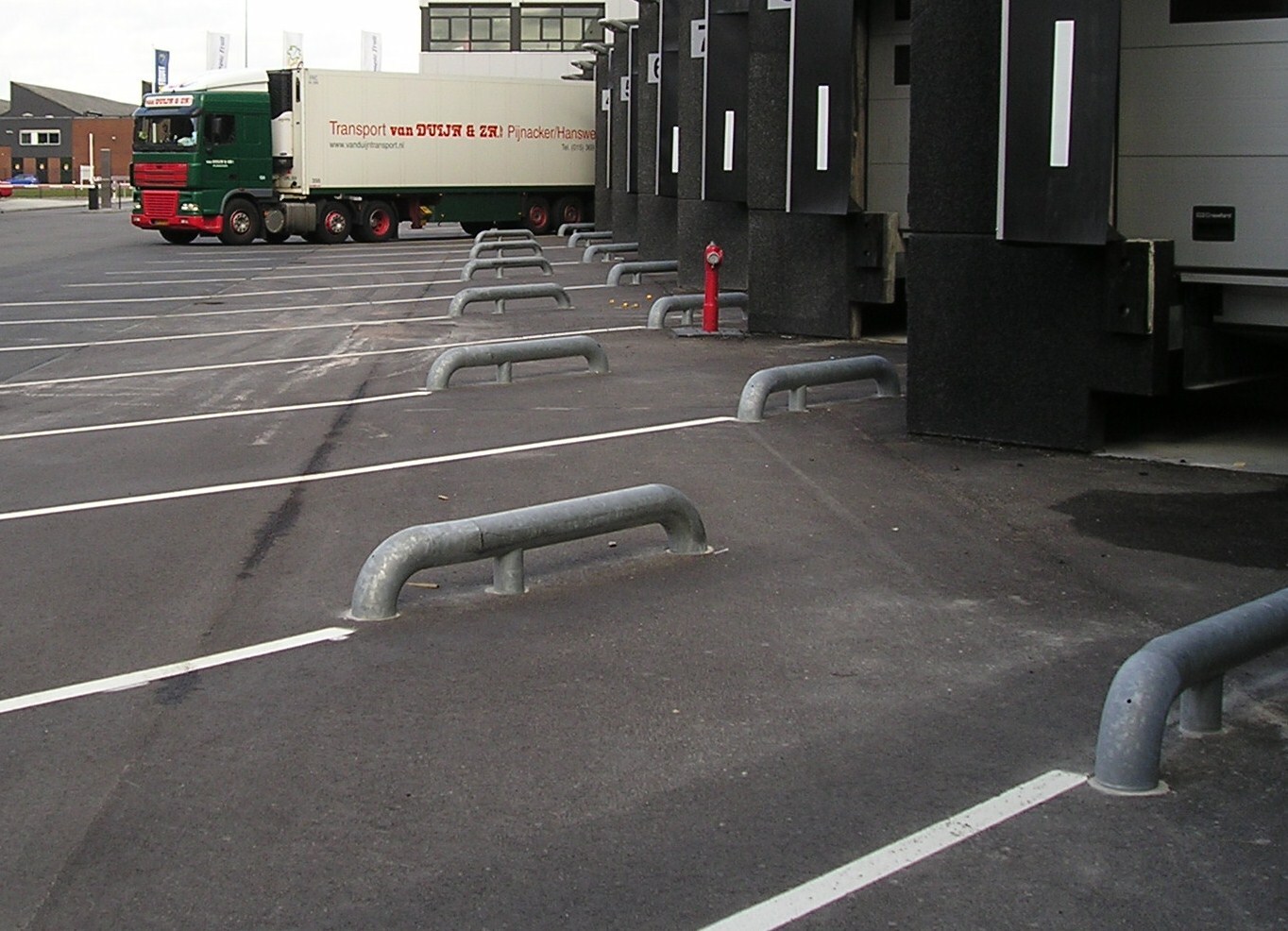 Radfänger mit Knick (links) 159x4,5x1950 mm. in Asphalt/Pflasterung